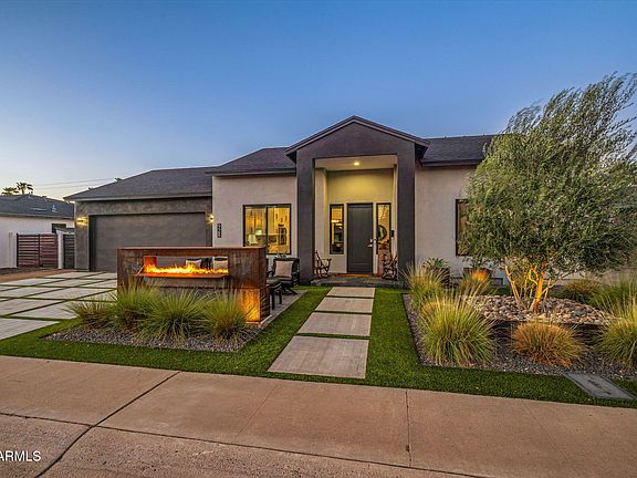Experience luxury living in this beautifully upgraded 4-bedroom, 3.5-bath home, situated in the heart of Uptown Phoenix. Offering 2,303 sq ft with soaring ceilings and a bright, open layout, the interior showcases a chef's kitchen featuring a gas cooktop, quartz waterfall counters, white cabinetry, and high-end finishes throughout. The owner's suite impresses with a spa-like bath featuring a freestanding tub and oversized walk-in shower. Step outside to a resort-style backyard with turf, RV gate & parking, a covered pergola, full outdoor kitchen with smoker & grill, built-in spa, and TV, perfect for entertaining. The front yard includes a gas fireplace and a seating area for cozy evenings. Enjoy Madison schools, nearby shopping, dining & all that Central Phoenix has to offer!