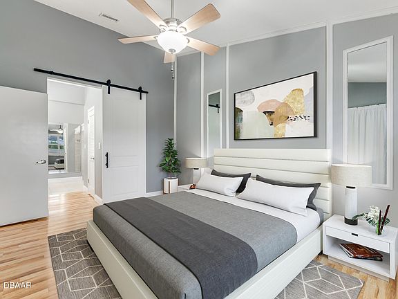 The master bedroom and custom bathroom has a large walk in closet and dual shower heads larger than life shower with built in seating. Sliding barn doors lead to the Master bedroom with sliding doors to the back lanai. The guest room has engineered wood floors, plantation shutters and a pocket door leading to the guests private bathroom.
