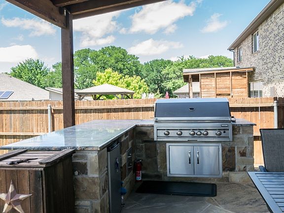 Wonderful drive up with three car garage, cedar doors, Brick and Stone exterior elevation. From the entry pass Study with French doors, into expansive kitchen with beautiful island, all open to Family Living area. Kitchen has 5 Burner stainless cook top, self-cleaning oven and separate microwave, granite count tops, walk in pantry and butler's pantry. Dining 2 two story vaulted ceiling opens to game room-loft. Ceramic tile floor from entry, kitchen, dining room and family room, plus a corner stone fireplace. The outdoor kitchen with gas grill, granite to counter tops and refrigerator. Exposed cedar beam patio cover and a stone patio surface. In back corner of yard, you have a SHE shed for art and craft projects. Upstairs has a larger bedroom with an Ensuite bath that could be a second master. Front bedroom up has a Juliet Balcony to front of house. Game room up would be a great media room and has a wet bar area for entertaining. Primary bedroom has windows to back yard and 5 windows above bed area. Three car garage has a storage rack from ceiling, cabinets for enclosed storage and pull downstairs for more storage.