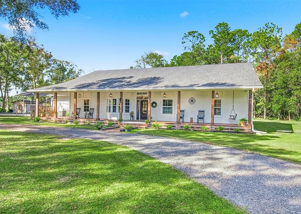Welcome to this beautifully renovated home on over an acre with no Hoa, offering the perfect blend of freedom, space, and modern comfort. The charming wrap-around front porch invites you in, while the expansive covered back porch provides the perfect place to relax, entertain, or simply take in the peaceful surroundings. The sunsets here are amazing! This home was completely renovated in 2023 and is practically brand new. Just a few of the big ticket items include; a new roof, whole house water filtration system, new irrigation system, storage building, and carport. Brand new windows were installed in 2025 as well. Inside, you’ll find modern upgrades throughout, including LVP flooring, quartz countertops, and beautiful kitchen cabinets. The home features three spacious bedrooms and two fully updated bathrooms, along with two living rooms—one of which can easily serve as an office or flex space. A cozy wood-burning fireplace adds warmth and character. The massive primary suite is a true retreat, complete with a luxurious bathroom and plenty of space to unwind. Outside, the property includes a large matching storage building with electric (24x24), lean-to (12x24), covered carport (30x25), and an extra-large garage with premium shark coating flooring—ideal for vehicles, hobbies, or additional storage. An additional slab was poured connecting the carport and building so there is plenty of room for parking. Move-in ready and designed for comfort, style, and functionality, this home has it all. Located in a great area close to the beach and shopping, this area is booming. If you are looking for the perfect blend of peaceful country living and convenient access to everything you need, this is the home for you! Call for your showing today!