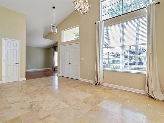 Beautiful 3/2 plus Den POOL home in lovely community. Kitchen features upgraded cabinets, granite counters & quality appliances. Travetine floors in family room, kitchen, baths & breakfast area. Formal living and dining. Wood floors in Living room. Open spacious floor plan with volume ceilings. Stylish window treatments, designer paint colors, decorative light fixtures, and Moen faucets. Glass sliders pocket and open onto tropical private lanai area with screened in pool and spa. Master bath has been renovated, gorgeous cabinets, granite tops, all glass shower, jacuzzi garden tub. House fully re-plumbed last year. Community features tennis courts and playground. Great location close to major highways, restaurants, shopping, and good schools. Move in ready.