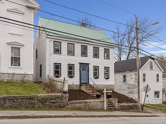 Built in 1790 and extensively renovated - This smart looking colonial is located just footsteps away from downtown Bath and offers more than meets the eye! It is truly a unique blend of traditional elegance and modern convenience. Brand new kitchen with gray shaker cabinets capped with quartz countertops and high-end stainless-steel appliances. Off of the kitchen is a separate dining room, which opens to the living room at the front of the home. Rounding out the first floor is an office/den with a half bathroom and separate laundry space. Upstairs features 4 full sized bedrooms, complemented by lovely original pumpkin pine floors and a full bathroom. The 3rd level is walk up access and offers a tremendous amount of storage space or could easily become a bonus room with a few more finishes! Preserved period details include original trim and moldings, hardwood floors, and lofty 9' ceilings all benefited with new electrical/wiring and plumbing throughout, full interior and exterior paint, new high efficiency on demand Bosch boiler and Rinnai tankless water heater, and updated vinyl windows and roof make this home a must see! Outside, the property allows space for a firepit or your own backyard oasis. The detached one-car garage provides convenient storage space, and the driveway offers 2 additional off-street parking spaces. Easy walk to the library, water front park, shops and restaurants!