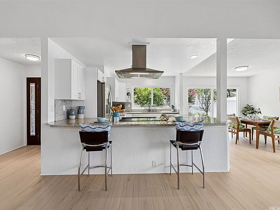 Charming SINGLE-LEVEL home in the highly desirable East Honolulu neighborhood of Upper Hahaione Valley. This meticulously maintained home offers a seamless blend of modern comforts and island-style living. Featuring 4 bedrooms and 2 updated bathrooms, this home has been thoughtfully enhanced with fully renovated kitchen and bathrooms, new luxury vinyl plank flooring, new carpeting and fresh interior and exterior paint—completely move-in ready! Designed for efficiency and comfort, the home boasts an owned solar photovoltaic system with net metering, double-paned windows and doors, plus split AC units throughout, ensuring year-round comfort. The expansive, fully landscaped backyard sits on a generous, level 6,600 sq ft lot—ideal for outdoor entertaining or peaceful relaxation. Positioned in an elevated location, enjoy refreshing mountain breezes and ocean vistas, while being within an International Baccalaureate school district. Convenience is key, as you're just minutes from Costco, shopping centers, dining options, parks, hiking, and beaches. Don't miss this opportunity to own this gem in one of Honolulu's most covetred neighborhoods! 2 photos have been virtually staged(enhanced).
