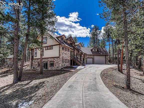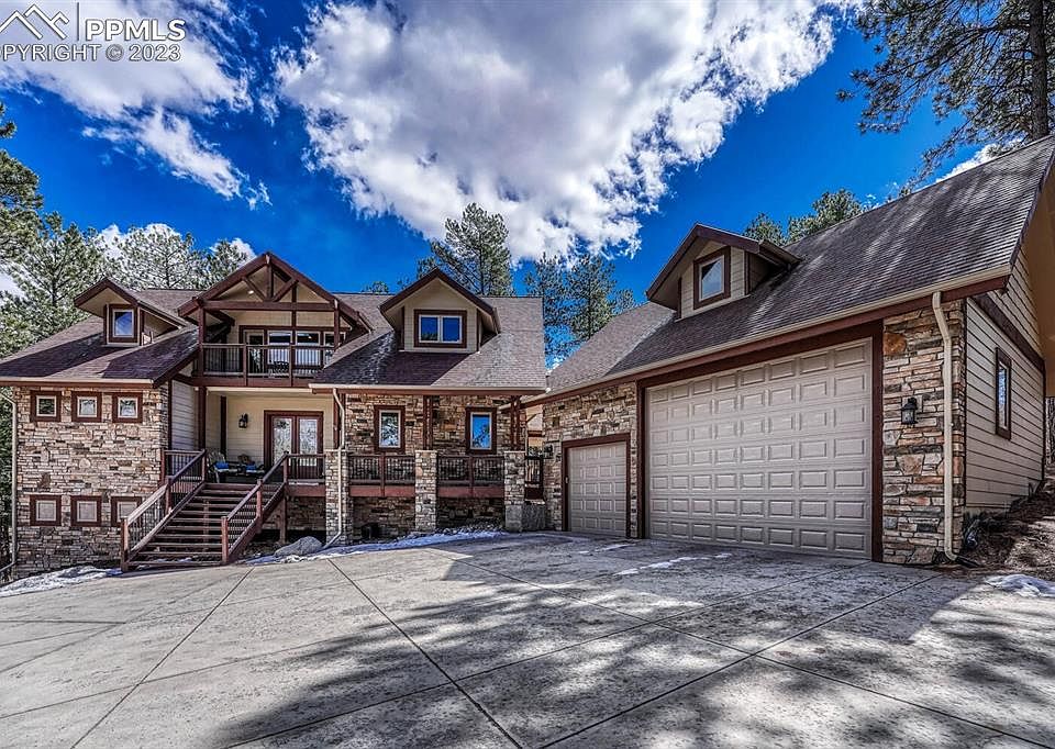 Beautiful custom home on one acre treed lot in the highly desired Sage Port neighborhood in Larkspur! From the welcoming front porch, to the huge back deck and several balconies, this home incorporates indoor and outdoor living at its finest. The open-concept floor plan with vaulted ceilings and fireplace in the main living area with access to the back deck and gourmet kitchen is an entertainers dream. Step into the bright and airy main floor primary suite with it's own private deck, double-sided fireplace, updated bathroom with frameless glass door shower, dual sinks, built-in luxury cabinetry, and walk-in closet! The rest of the main floor features a gourmet kitchen with eat in area, granite counters, gas cooktop, skylights, large pantry w/french doors, stainless appliances, and large island; family room w/stone accented fireplace, large windows, built in's and wood floors; bathroom with glass shower; and laundry room w/built in's, utility sink and cabinets. Upstairs are 3 more bedrooms, including one with TWO closets and built in window seat, another full bathroom; and spacious loft/office/playroom with built in's, recessed lights, vaulted ceiling and doors to the large balcony. The finished walkout basement contains the 5th bedroom, full bathroom with newer vanity and walk in shower, great room with wall of built in's, and living room with stone accent fireplace and bonus exercise area. The 3 car garage has an oversized 16x12 foot garage door and contains lots of work and storage space. Brand new furnace, new tankless water heater, Central AC. TV & mount in basement are included. No HOA dues (unless you want to join the optional Sage Port HOA of course!). Easy access to I-25, Castle Rock, Colorado Springs and Denver. Enjoy the local restaurants and shopping in Larkspur and Palmer Lake! In the nationally recognized Douglas County School District.