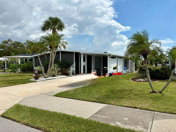 Welcome to 928 Lucaya, a fantastic new listing in the heart of the sought-after 55+ Resort Community of Bay Indies. This beautifully renovated 2-bedroom, 2-bath home measuring 24' x 40', where every detail has been thoughtfully upgraded offers comfort, style, and peace of mind. Perfectly situated in the center of the park, it offers convenient access to all the amenities Bay Indies has to offer. Plus, it's just one mile from downtown Venice with shopping, dining, gorgeous beaches, golf courses, boating, and fishing close by. There is also a boat and RV storage area. A unique feature of living on Lucaya is the only street in Bay Indies that permits motorcycles and scooters, fostering a sense of inclusivity within the community. From the moment you arrive, the curb appeal is undeniable-majestic palms frame a meticulously maintained lawn that sets the tone for what awaits inside. The exterior boasts a freshly painted driveway, a 2023 TPO roof, a new carport, and new double-pane windows that enhance both energy efficiency and aesthetics. A reverse osmosis water softener system adds a touch of luxury, while insulated shades in the front lanai and side screen room provide year-round comfort. The A/C and hot water heater, both replaced in 2019, ensure reliable climate control and convenience. Step inside to discover a spotless, move-in-ready interior that comes partially furnished, making your transition seamless. Each room features a distinctive wall décor that adds personality and charm. throughout. The screen room off the carport features double doors, making it ideal golf cart storage while also serving as a breezy retreat to enjoy Florida's outdoor charm. Adjacent to it, the insulated shed houses a stacked W/D along with the hot water heater, and offers ample space for seasonal items. Inside, the semi-open floor plan, beginning with a galley-style kitchen outfitted with stainless steel appliances, offers abundant cabinetry and counter space. Between two pantries-some with pullout shelves-are storage bins that make organization a breeze. The dining area is cleverly designed with a flip-up table that seats four, complete with built-in shelves and hidden storage, perfect for maximizing space. The expansive living room features a cozy sofa, recliner, and two occasional chairs, all anchored by a stylish shiplap accent wall that adds a touch of coastal flair and perfect TV watching. Step into the lanai through the front entrance and you'll find weatherproof shades and screens that create a tranquil spot for unwinding or people-watching. Down the hallway, a double closet provides extra storage and leads to the guest bedroom, which accommodates any bed size and includes a closet with built-in drawers. The newly redesigned guest bath offers a tub/shower, a spacious vanity, and a linen closet. The master suite is a true sanctuary, highlighted by a large headboard with built-in shelves and nightstands that frame a king or queen bed. The ensuite bath is a private retreat featuring a step-in shower with glass doors, a commode tucked behind a pocket door, and a vanity set against charming wallpaper. A dresser nestled in an alcove adds elegance, while two walk-in closets ensure you'll never run out of storage. With its thoughtful upgrades, abundant storage, and inviting layout, this immaculate home is perfectly priced and ready for its next owner to enjoy the Florida lifestyle. Step outside your door and take leisurely strolls with your furry friend along the scenic 3-mile biking and walking path, styled for easy living. Because we are situated on the Gulf Coast near the historic town of Venice there is no amenity lacking here. Tennis, pickleball, bocce, kayak launch, three pools, hot tubs, sauna, biking and walking path are all at your fingertips. If it's poker or different card games, we have it. Dances, dinners, different clubs, library, craft room and concerts are here too. There is a restaurant for every taste, shopping, fishing, golf and cultural events all in Venice. Home must be maintained to the Community Prospectus. The lot rent is determined by the Community office and covers all the amenities offered including property taxes and lawn maintenance.