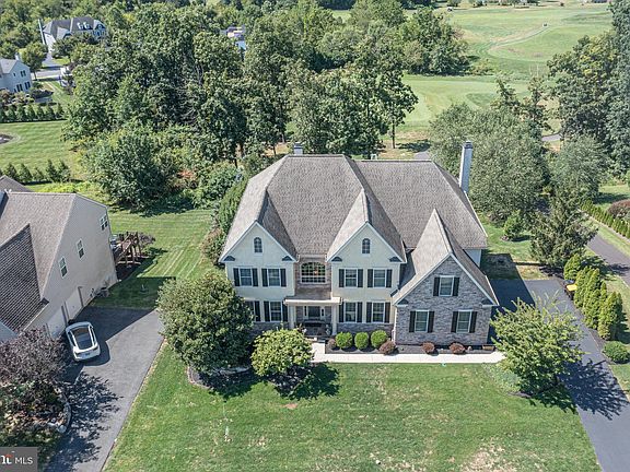 Welcome to this spectacular luxury home nestled in prestigious Lederach Golf Club community and award-winning Souderton School District! Indulge in a lifestyle of unparalleled comfort and sophistication, minutes to charming Skippack Village with its quaint shops and delightful restaurants, gourmet Henning’s Market, the Bay Pony Inn, Lederach Piano Bar, and popular Perkiomen Trail, offering immersive scenery and plenty of hiking, jogging, biking, kayaking, wildlife, & birdwatching. Designed for those who appreciate refined living, this estate home showcases exquisite details, high-end finishes, and spacious, thoughtfully designed interiors. Upgrades galore include dual-zoned HVAC, dual staircases, two fireplaces, surround sound throughout, roof installed approximately 2014, electrical panel upgraded 2025, water heater installed 2022, exterior lighting, security system, first floor laundry room, oversized three-car garage, and recently paved expanded driveway. Beautiful curb appeal...with professionally manicured grounds, Roman accent columns highlighting the covered portico , front door with custom sidelights and transom windows, and wall of natural fieldstone. Step into the breath-taking, 2-story foyer showcasing the glistening hardwood floors, exquisite Swarovski Crystal chandelier, dramatic staircase with oak treads, and leads to the elegant formal living room with plush carpeting, double crown molding, and custom blinds. The awe-inspiring great room boasts a floor-to-ceiling soaring wall of windows, wood-burning fireplace with slate surround and hearth, plush carpeting, modern ceiling fan, and back staircase to the second floor. The epicurean kitchen is well-equipped for a culinary artist, complete with sleek 42" cabinetry with lighting both above and below the cabinets, quartz countertop with glass tile backsplash, gas range with hood, premium high gloss granite island with pendant lighting, stainless steel GE appliances, recessed lighting, gleaming American Walnut floors, and spacious butler's pantry with sink! The sundrenched solarium breakfast room is accented by a stone fireplace with white mantel and a wall of windows, creating more visual texture and depth as you as you enjoy the captivating views of the 12th Fairway & 13th Green ( not in landing zone, so you won't get pelted by golf balls)! Both doors on either side of the gas fireplace lead to the corner-wrapped massive deck overlooking your picturesque sunsets! Enjoy an evening glass of wine or morning cup of coffee in your backyard oasis! The elegant dining room features sleek walnut flooring, bright windows, crown molding, and modern light fixture! The main floor study with private access to the back deck is flanked by the powder room and could easily be converted to an in-law suite or au-pair quarters! The lavish primary suite boasts a striking entrance with lighted art alcove that leads thru grand double doors, tray ceiling, recessed lighting, designer paint, opulent California closet, 2 additional walk-in closets with organizers, and a luxurious primary bathroom with garden soaking tub, water closet, granite Jack and Jill sinks, Victorian white cabinetry, stainless steel lighting & fixtures, oversized tiled shower with built-in ceramic seating, and Italian tile flooring! The stylish princess suite has huge closet, soft carpets, and full bathroom with tiled tub/shower combo! The additional lovely bedrooms are enormous, with plenty of closet space, new blinds, recessed lighting , and specialty finish paint. The expansive daylight basement with roughed-in plumbing and 9 ft ceilings is ready to be finished! Previous stucco inspection and repair receipts available for your peace of mind! Easy access to 113, 313, 73, 63, 202, 422, and the PA Turnpike! Don't miss out! Schedule your appointment today!