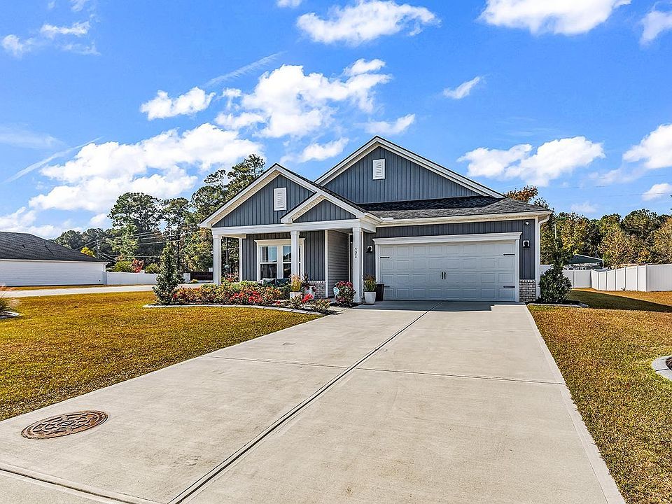 Recently constructed in 2024, this beautifully designed home in Creekside Point, Little River, South Carolina combines modern comfort with relaxed coastal living just minutes from North Myrtle Beach. Thoughtfully crafted for gatherings, the open-concept floor plan flows seamlessly from the spacious living area to a screened porch and extended patio, creating the perfect setting for entertaining or quiet evenings outdoors. Inside, attention to detail shows throughout. Enjoy energy-efficient construction, upgraded lighting fixtures, custom pull-out kitchen drawers, a built-in mudroom with cubbies, and custom-designed closets that maximize organization and style. A walk-through, walk-in closet conveniently connects the owner’s suite to the laundry room—making daily living simple and efficient. The private primary suite offers abundant natural light, a large walk-in closet, and a spa-style shower for a truly restful retreat. A Jack-and-Jill bath with dual sinks serves the secondary bedrooms, adding comfort and functionality for family or guests. Outdoors, this home impresses with enhanced landscaping, decorative curbscapes, and a privacy fence, offering both curb appeal and seclusion. Located in Creekside Point, one of Little River’s most desirable new communities, residents enjoy oversized homesites, a community pool, and a cabana. Just minutes from the Little River Waterfront, North Myrtle Beach, championship golf courses, and waterfront dining, this home delivers a perfect blend of modern design, energy efficiency, and coastal convenience—all within reach of everything the Grand Strand has to offer.