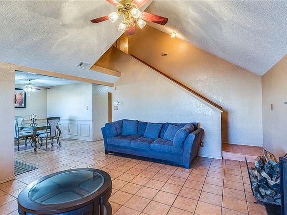 This wonderful home has a spacious living room with vaulted ceilings has ceramic tile floors and a WBF. The adjacent dining room has also ceramic tile flooring. The eat in kitchen has a drop in range and oven with built in microwave. There is also a dishwasher and disposal and plenty of cabinet space plus a cozy eating area. Down the hall is an exercise room, and another living area. These two rooms are the converted garage conversion and can be multi-purpose rooms. One has a window, the other sliding doors to the back. There is a half bath and washer and dryer area downstairs. Upstairs is the master bedroom and bath with separate tub and shower with dual sinks. There are two other bedrooms with bath.