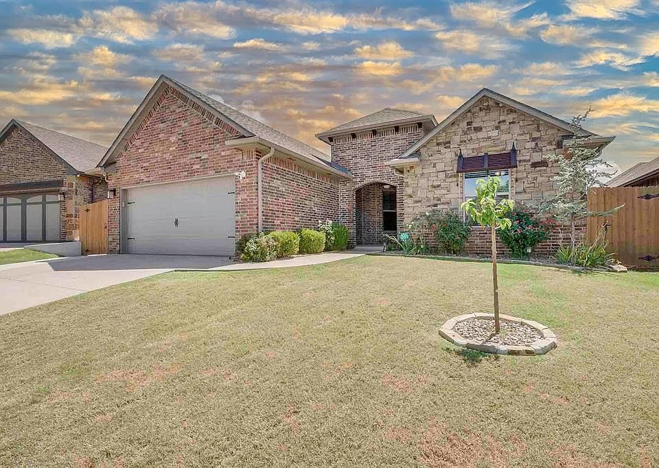 Welcome to 928 NW 191st Street, an immaculate one-story home in The Rush Brook addition of Edmond. Offering 3 bedrooms, 2 bathrooms, and a dedicated study or flex space across 1,716 sq ft, this home was designed with both comfort and functionality in mind. Inside, you’ll find brand-new carpet, fresh interior paint, and 3 cm granite countertops paired with rich mahogany-stained pine cabinets and stainless steel appliances. The open-concept kitchen flows seamlessly into the main living area with a cozy fireplace and mantel, making it the perfect gathering space for family and friends. The Primary suite is tucked away for privacy and features dual vanities, a Jetted tub, and a spacious walk-in closet with a built in dressing mirror.. This home also comes fully equipped with upgrades you won’t often find: a below-ground storm shelter, a whole-home Generac generator, newly installed solar panels, and an alarm system with security cameras. Outside, enjoy a covered patio overlooking the beautifully landscaped backyard, extended concrete along the east side as well as extra patio space, crushed gravel along the west side, and French drains that carry water to the street. The backyard is fully fenced, and the garage provides extra storage. All of this, plus a prime location just minutes from shopping, dining, and entertainment, within the top-rated Edmond School District. Move-in ready and offering unmatched peace of mind. Rush Brook offers amenities such as a playground and a community pool with a splash pad.