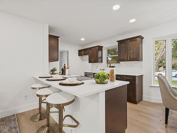 Cozy brick fireplaceModern finishesDesigner finishesOpen floor planRecessed lightingNew flooringStainless steel appliances