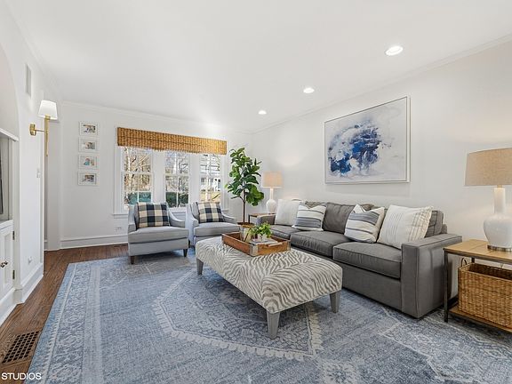 This Classic Nantucket Colonial blends timeless charm with modern updates and an effortless flow for everyday living and entertaining. The welcoming foyer leads into a formal living room, complete with a fireplace and charming built-ins. This living area opens seamlessly into the updated all white kitchen. Featuring stainless steel appliances and a gracious breakfast nook-this kitchen is happy and bright as it is flooded with sunlight all day long. The formal dining room with charming built-ins and the family room complete this exceptional first floor living space. The spacious primary suite offers a serene retreat, complete with a large walk-in closet and a spa bath with double vanity, soaking tub, and a standing shower. Two additional generously sized bedrooms and a full bath with double vanity complete the second floor. Hardwood floors extend throughout the first and second floor, adding warmth and character to every room. The sizable third floor offers a fourth bedroom, full bath, as well as an office nook. The south facing windows allow for an abundance of natural light to fill the space. The lower level of the home is just as impressive with a bright, updated recreation room, a playroom, and a large laundry room with custom-built storage solutions. Step outside to a professionally landscaped, private backyard-perfect for outdoor relaxation and entertaining. And don't forget the sought-after 2-car attached garage-perfect for Chicago winters as well as the convenient adjacent mudroom with slate flooring to help you unload after a long day. With its unbeatable location-just steps from town, train, parks, schools (Crow Island, Skokie and Washburne), and the Winnetka Community House-this is a home where you can truly hang up your keys and move right in.