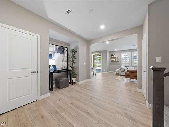 Welcome to effortless Summerlin living in this beautifully upgraded Stonebridge home! With wood-look tile floors, custom wood shutters, and a full bed & bath downstairs, this home blends comfort & functionality. Host friends with ease at the wet bar with wine storage and fridge, or gather in the open great room & chef’s kitchen featuring granite counters, island, stainless appliances & a walk-in pantry. Upstairs, the loft offers a perfect spot to unwind, with 4 bedrooms & 3 baths, including a serene primary suite with dual sinks, separate tub & shower. An upgraded wrought iron staircase adds style, while the finished garage with tankless water heater & water softener adds convenience. Out back, enjoy sunny afternoons or quiet evenings under the spacious covered patio with pavers & artificial turf—ideal for low-maintenance outdoor living. Located in the heart of Summerlin West, near parks, trails & top-rated schools—this home offers the best of modern comfort & community living.