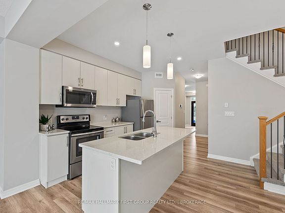 A charming 3 bedroom 3 bath townhome in the East-End of Kingston, this move-in-ready home offers the perfect blend of comfort and convenience. Step inside to a bright and spacious layout with large windows and soaring 9ft. ceilings that fill the space with natural light. The open-concept living and dining areas create a welcoming atmosphere, perfect for entertaining guests and relaxing evenings by the fireplace. Gorgeous kitchen with large island, quartz counters and ample cabinetry including a walk-in pantry. Main floor laundry with inside access to the garage. Upstairs, you'll find three well-sized bedrooms, each designed with comfort in mind. The primary bedroom features a generously sized walk-in closet and ensuite bathroom, while the additional rooms are perfect for family, guests, or even a home office. Completing the upper level is a 2nd full sized bathroom. Freshly painted throughout in neutral tones and only 8 years old, this home still feels brand new! Spacious backyard is easily accessible off the main level and as a bonus you have no rear neighbors. Located close to CFB Kingston, top-rated schools, parks, and all the amenities of the East End. Plus, you're just minutes away from downtown Kingston, where you can explore a vibrant mix of dining, shopping and entertainment. Whether you're strolling along the waterfront, visiting local cafes, or enjoying live performances, everything you need is within reach. Don't miss this opportunity to own a home that perfectly balances modern living with an unbeatable location. You won't want to miss this one!