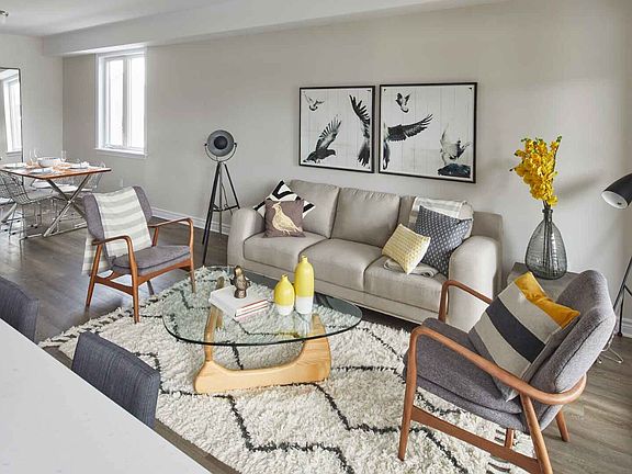 Sleek and modern, the exterior complements the interior perfectly. Our urban towns offer an abundance of light, two or three bedrooms, nine-foot ceilings, quartz countertops, luxury vinyl plank flooring with Berber carpet in the bedrooms and on the stairs, five stainless steel appliances and ceramic bathroom floors with a master ensuite. Each home includes a high-efficiency heat recovery ventilator and furnace, and is completed with a private, single garage with a garage door opener. In addition, 24-hour property management services are available for your needs.