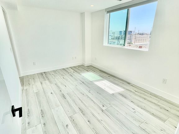 Beautiful brand new building, located in the heart of Koreatown large open floor plan this one bedroom, one bath includes washer and dryer, high ceilings lots of natural light. Custom European wooden glass, kitchen cabinets, large shower, great size bedroom with a walk-in closet, window treatments, and one parking space in garage is included. Access to roof deck, barbecue and lounge area ground floor fitness room ready to move in. Owner pays for Gardner, all utilities on tenant