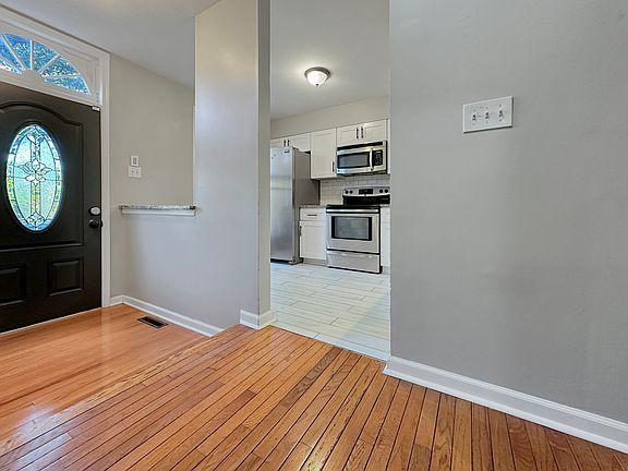 Welcome to your new home in Baltimore's vibrant Pigtown neighborhood. This renovated 3-bedroom, 2-bathroom rowhome offers over 1,500 square feet of modern living space, ideal for professionals or small families. The home features an open-concept layout, a finished basement with an electric fireplace and built-in 60-inch TV (included), and a gourmet kitchen with shaker-style cabinets, granite countertops, and stainless steel appliances.
