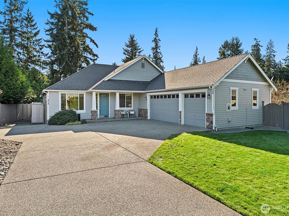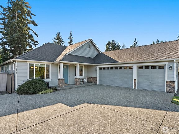 Rambler w/3-car garage in the sought-after Meadows gated community! The layout includes a living room w/cozy fireplace, well-appointed kitchen w/breakfast nook and a spacious primary suite with spa-like bath w/skylight & walk-in closet. Two more bedrooms, full hall bath and utility room w/cabinets & sink complete the interior. ADA-accessible home boasts fresh paint, new carpet, wood-wrapped windows, crown molding, heat pump (A/C), custom window treatments & whole-home portable generator. The fenced backyard retreat features a custom waterfall, covered patio w/hot tub, sprinklers, landscape lighting & shed. The neighborhood offers community open space and close proximity to beaches, boat launches, golf & State parks. Assumable 2.75% VA loan!