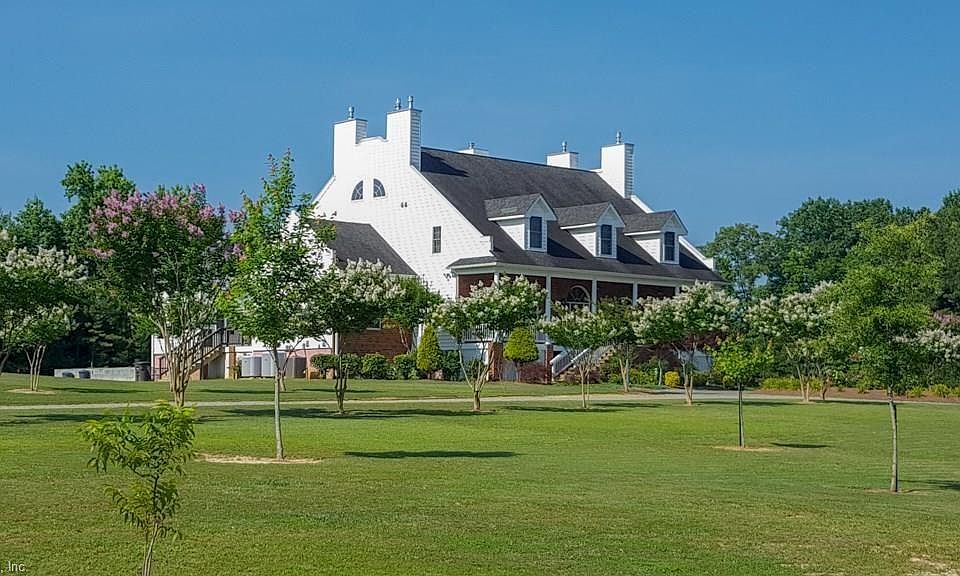 Exceptional Southern retreat. Home features 10 spacious bedrooms, including a master up and a master down, 10 full baths, 3 half baths, a gourmet kitchen with gas stove, an exercise room and sauna, first floor laundry and basement laundry rooms, a bar with seating for 10, and a pool table room. There is 5,769 square feet of living space above ground and 3,447 square feet of living space in the fully finished basement. 10-foot ceilings on the first floor and 9-foot ceilings on the 2nd floor. Lots of attic storage potential. 5-zone dual fuel HVAC on 1st floor, 2 tankless water heaters, 1 wood burn and 3 gas fire places. A 6x23 covered rear porch and a 10x10 rear deck. Twin open staircases lead to the inviting front porch. Over 10 acres of flat land holds a 24x72 green house, a garden with fruit trees, and a partially fenced portion of land which can be used for livestock. A beautiful home, in excellent condition, inside and out! ACTUAL CITY AND ZIP CODE : SKIPPERS, 23879. Just off I-95.