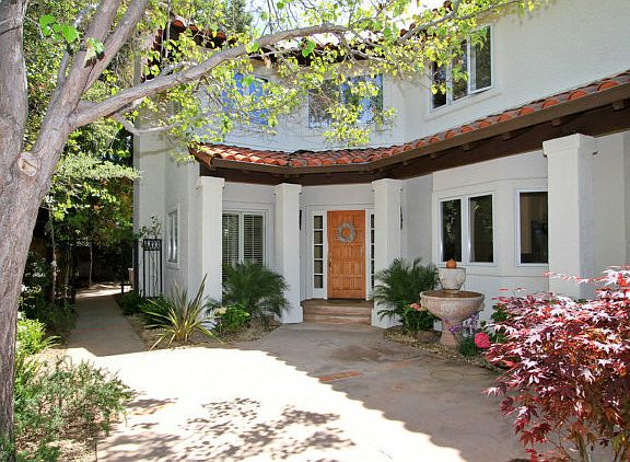 Newly landscaped/designed backyard! This exceptional home evokes the feeling of a Spanish retreat, classic red-tiled roof, wooden eaves & bright stucco walls. Inside, designer appointments are many & were featured in Sunset Magazine & on HGTV. All around, French doors open to enchanting spots for outdoor living in a private setting