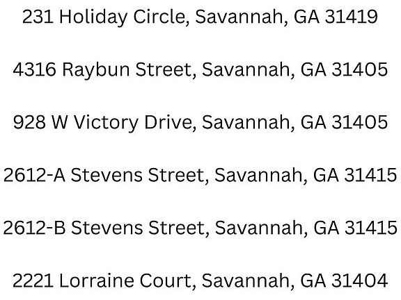 Incredible investment in Savannah. Portfolio includes 8 rental units across 6 properties, including 6 single-family homes and a carriage house duplex. Every property is currently occupied and producing consistent income. Rents 30–50% below market, creating immediate upside through renewal increases. Eligible for Sec 8 voucher tenants, 3-bdrm voucher rates are high enough to almost double current rents on several homes. Well-maintained with only minor deferred maintenance. NOI is strong. Leases run through 2026, allowing a smooth, structured plan for future adjustments. Stabilized, income-producing portfolio with significant appreciation and cash-flow potential. Perfect for DSCR buyers, long-term investors, 1031, or expand rental holdings at scale. Complete financial package available. SOLD AS PACKAGE - 22 Westminister Drive, 231 Holiday Circle, 4316 Raybun Street, 928 W Victory Drive, 2612-A Stevens Street, 2612-B Stevens Street, and 2221 Lorraine Court, 2348 Toussaint Avenue.