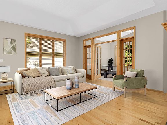 Available October 1st, 2025! Beautifully maintained end-unit townhome is nestled in a peaceful, wooded Maple Grove neighborhood. Rare single-level living offers the perfect blend of luxury, comfort, and privacy. This spacious home features 4 bedrooms, 3 bathrooms, and a 3-car garage. Enjoy elegant details like coved ceilings, solid maple trim and doors, and hardwood floors throughout the main level. The kitchen boasts maple cabinetry, granite countertops, pull-out shelving, and high-end Samsung stainless-steel appliances. A sun-filled dining room and two-sided gas fireplace connect seamlessly to a cozy four-season sunroom and deck with wooded views.The primary suite offers a fireplace, private deck access, walk-in closet, and a spa-like ensuite with dual vanities, jetted tub, and walk-in shower. A second bedroom with French doors is perfect as an office or guest room.Additional perks include a fully equipped laundry room on the main level, and a finished lookout lower level with a large family room, second fireplace, 2 bedrooms, a bath, and plenty of storage.Close to trails, Arbor Lakes, dining, and major highways this home combines peaceful surroundings with modern convenience. Property is virtually staged