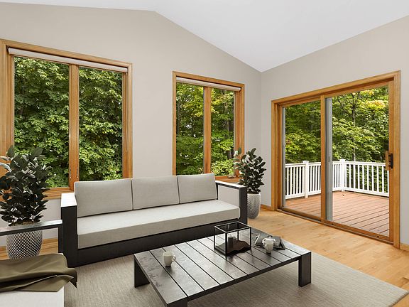 Two-sided gas fireplaceHardwood floorsPlenty of storageElegant detailsCozy four-season sunroomWooded viewsOffice or guest room