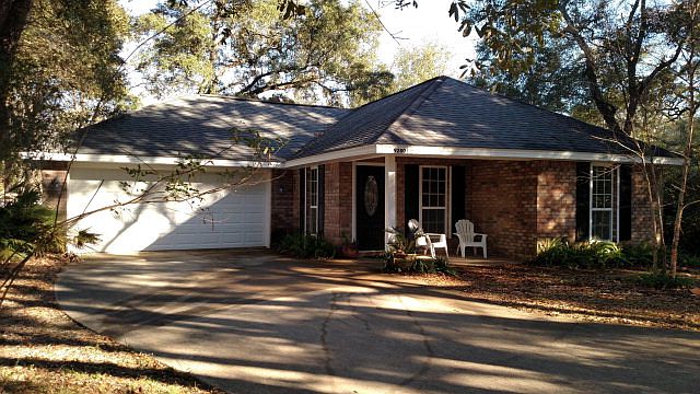 Beautiful bay views from the front porch of of this 3 bedroom brick cottage set high on a hill overlooking the Cove on Miflin Creek at the top of Wolf Bay. Subdivision has a common waterfront park. There is also a boat launch just around the corner. Great fishing and boating!! Only a short ride to the white sandy beaches of the Gulf of Mexico by boat or car and only minutes to shopping and dining in Foley, but far enough away to enjoy quiet sunsets and mother nature's exquisite artistry.