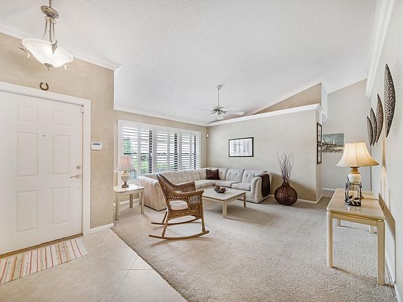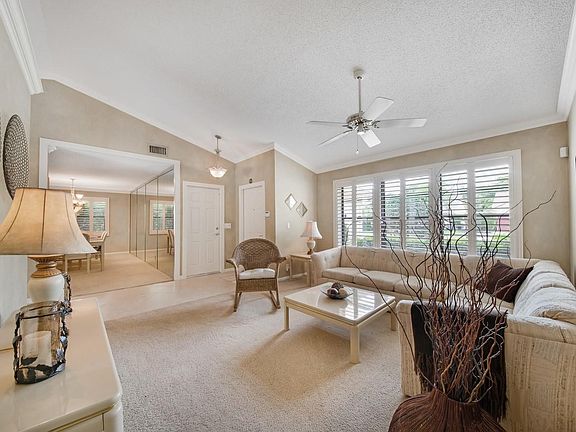 Experience the lifestyle you seek in Boca Fontana. From the moment you enter this stunning home you will notice the vaulted ceilings and the abundance of natural light. Entertain with style in the formal living and dining rooms or spend a casual afternoon in the family room or on the screen enclosed patio. Stunning chef's kitchen features cabinets with pull-outs, under cabinet lighting, Silestone countertops, tiled backsplash, pass through to patio, high hat lighting and a custom breakfast nook with storage. Master retreat with a slider to the patio, custom walk-in closet, double sinks with Quartz countertops and a walk-in shower. Enjoy quiet moments on your covered patio with outdoor speaker, a custom game pool (3 feet on sides and 5 feet in the middle), spa and screen enclosure. Neutral flooring, vaulted ceiling, crown molding and plenty of closets are a few of this homes highlights. Boca Fontana provides first class amenities that includes two clubhouses, resort style pools, tennis and basketball. Located close to shopping dinning, entertainment, "A" rated school and major highways.
