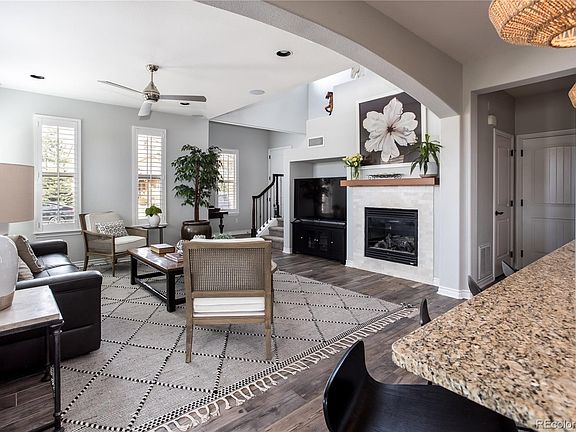 Truly the Best of the Best in Low Maintenance Living in the Heart of the Highly Sought After Tresana Neighborhood! This Gorgeous End Unit Townhome Sides to Open Space and is Filled with Natural Light and Beautiful Finishes Throughout Over 2000 Square Feet * The Open Floorplan with High Ceilings Boasts a Spacious Living Room with a Gas Fireplace Adjacent to an Amazing Chef's Kitchen Featuring Slab Granite Countertops, Maple Cabinetry with an Espresso Stain and Under Cabinet Lighting, Double Ovens, Gas Cook Top, Stainless Refrigerator, Microwave and a Large Island With Seating for Four * The Sunny Dining Room is Perfect for Entertaining * Enjoy the Convenience of a 3/4 Bath and a Main Floor Bedroom for your Guests or a Quiet Home Office * The Main Floor Also Features an Easy to Care For Ceramic Tile Floor That Looks Like Distressed Wood * The Upper Level Includes a Gracious Primary Bedroom with a Tastefully Updated 5-Piece Bath Featuring a Jetted Tub, Walk-in Shower, and a Generous Walk-in Closet * The Secondary Upstairs Bedroom is Located Near a Full Bath with Double Sinks and the Laundry Room * The Cozy Loft is a Nice Bonus Area for Working Out, Reading, Relaxing or an Optional Office Space * The Many Updates Include a New Refrigerator, New Dishwasher, New Cooktop, New Garage Door Opener, New Hot Water Heater, New Light Fixtures, New Jetted Tub, New Tile Floor and Shower in the Primary Bathroom, and a Beautifully Updated Fireplace Mantel and Surround in the Living Room * The Spacious Patio is Ideal for Alfresco Dining and Watching the Sun Set * This Home is Meticulously Maintained and Move In Ready! * Minutes to the Tresana Community Pool, Whole Foods, Walking Trails, Restaurants, Highlands Ranch Town Center, Recreation Centers, and C-470!