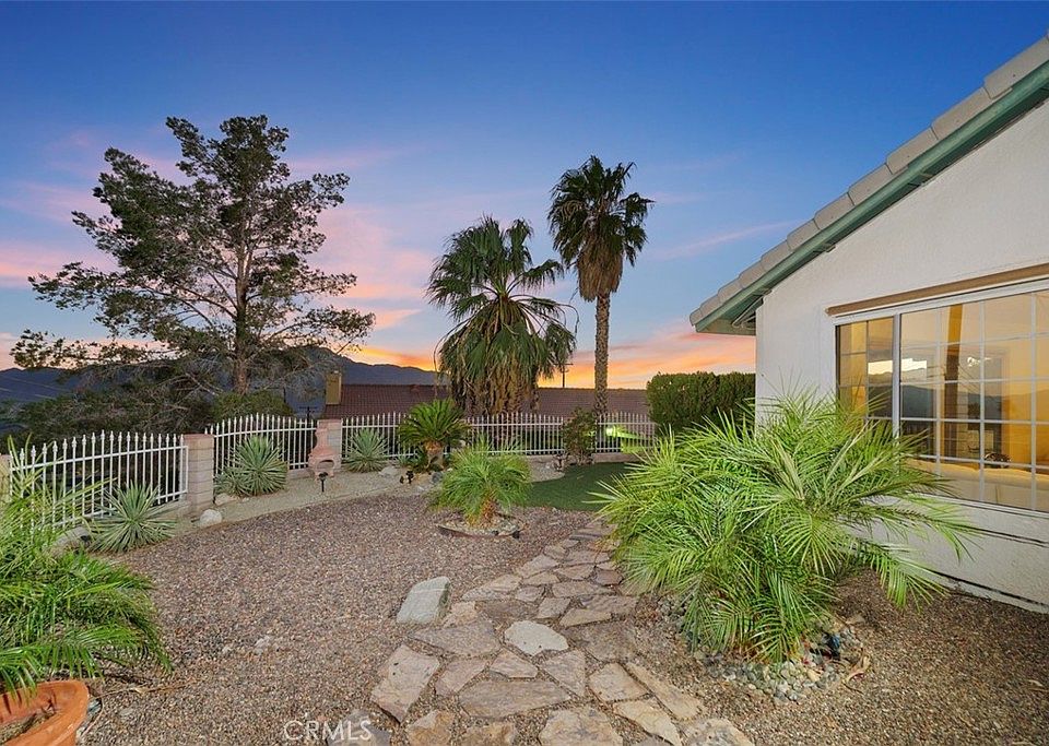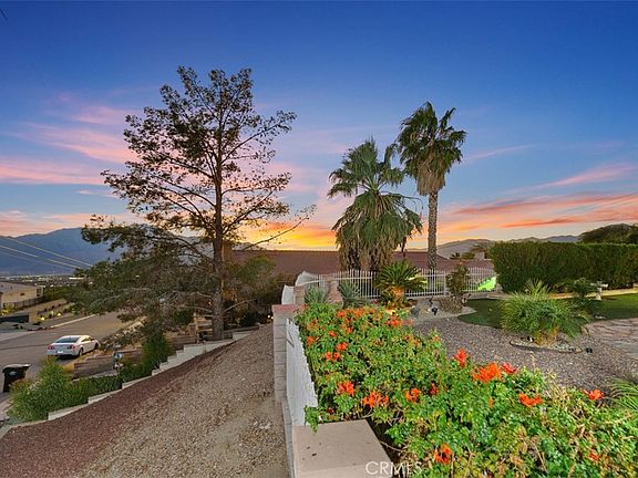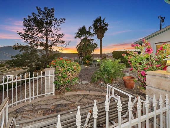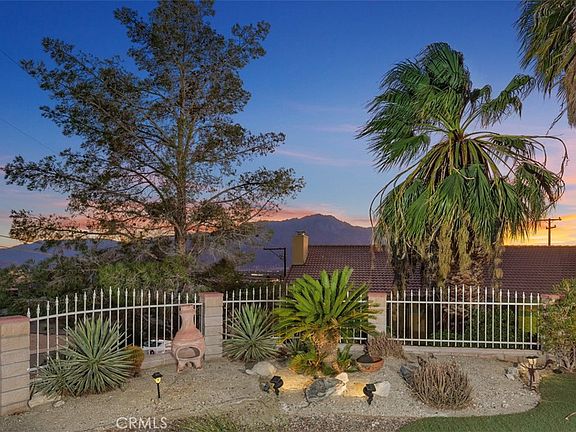 Located in the most exclusive area of Desert Hot Springs, this home offers panoramic views and seamless indoor-outdoor living. Designed for both comfort and functionality, the 3 bedroom and 2 bath residence spreads across 2486 sf of living space and is situated on a 10,454 sf lot. The ample kitchen space has newer appliances, granite counters and breakfast bar connecting to a family room. A see-through fireplace divides the dining room from a sunlit living room and boasts vaulted ceilings and offers panoramic views of Mt. San Jacinto, Coachella Valley and city lights. The large primary bedroom has vaulted ceilings, sitting area suitable for gym or office, and connecting bath equipped with dual vanity sinks and over-sized jetted tub with hygienic drying cycle. All bedrooms have mirrored wardrobe closets. Outdoor covered patios offer an abundance of space for relaxing, alfresco dining and family entertainment while enjoying the sound of trickling water from a night-lit fountain in the limited maintenance landscaped yard. The backyard is briming with a profusion of delicious citrus from mature trees. Outdoor spaces have complete privacy, and the covered back patio offers a welcoming heated jacuzzi for ultimate relaxation. The front private seating niche is the perfect spot to savor your morning coffee or entertain guests as the sun sets in a blaze of color. Located close to restaurants, shopping and world renowned mineral hot spring spas, this home is move in ready and offers an extraordinary opportunity to embrace desert living and all it has to offer at a very competitive price.
