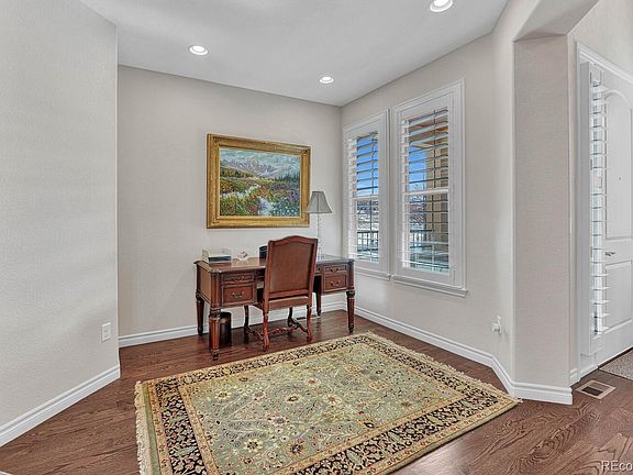 PHONOMENAL PANORAMIC MOUNTAIN VIEWS, In Fact, One of the Very Best Mountain Views in TRESANA, a Highly Coveted Low Maintenance Community in Highlands Ranch! Enjoy this Three-Bed, Four Bath, Main Floor Primary Bedroom, End Unit Home With Walkout Basement, Three Patios and Three-Car Garage (EV Charging Station). With It’s Stunning Two-Story Entry, You Will Immediately be Drawn to a Majestical View of the Colorado Rockies. This Beautifully Updated Home Boasts Luxurious Hardwood Flooring, Plantation Shutters Throughout the Home, California Closets and Custom Built-ins in all the Right Places! Open Concept Floorplan With Gourmet Designer Kitchen Emanates a Special Everyday Living and Easy Entertaining Experience. The Eat-In Kitchen Boasts Upgraded White Cabinets, Granite Countertops, Extended Island With Lower Cabinets, Stainless Steel Appliances, and a Gas Cooktop With Designer Hood. Open Formal Dining is a Breeze With the Mountain Views, an Impressive Tray Ceiling Open to Vaulted Family Room With Custom Media Built-In, a Gas Fireplace And Access to the Mountain Facing Covered Deck . Just Steps Away, The Main Floor Primary Bedroom Suite Includes Seating Space, Private Door to Patio, Mountain Views, Five-Piece Bath and CUSTOM Walk-In Closet. Relax in the Study/Library in the Loft Area Complete With English Style Built-In Bookcase or Head Up to the Upper Level Ensuite Guest Bedroom With Full Bath. Entertain in the Finished WALKOUT Basement, With Great Room (Wet Bar, Gas Fireplace and Flatscreen TV), a Covered Patio , Additional Bedroom, Three/Quarter Bath, and Large Storage Area. Tresana is an Active Social Community With A Private Pool & Patio, Walking Trails, and is Close to 3 Walkable Retail Centers (Whole Foods, Restaurants, Pharmacies, Fitness Centers) Easy Access to the Four Highlands Ranch Rec Centers, C-470, Hospitals, DTC and Park Meadows Shopping/Entertaining District. If You are Looking for a "LOCK AND LEAVE COMMUNITY" , You Can Have it in Tresana!!