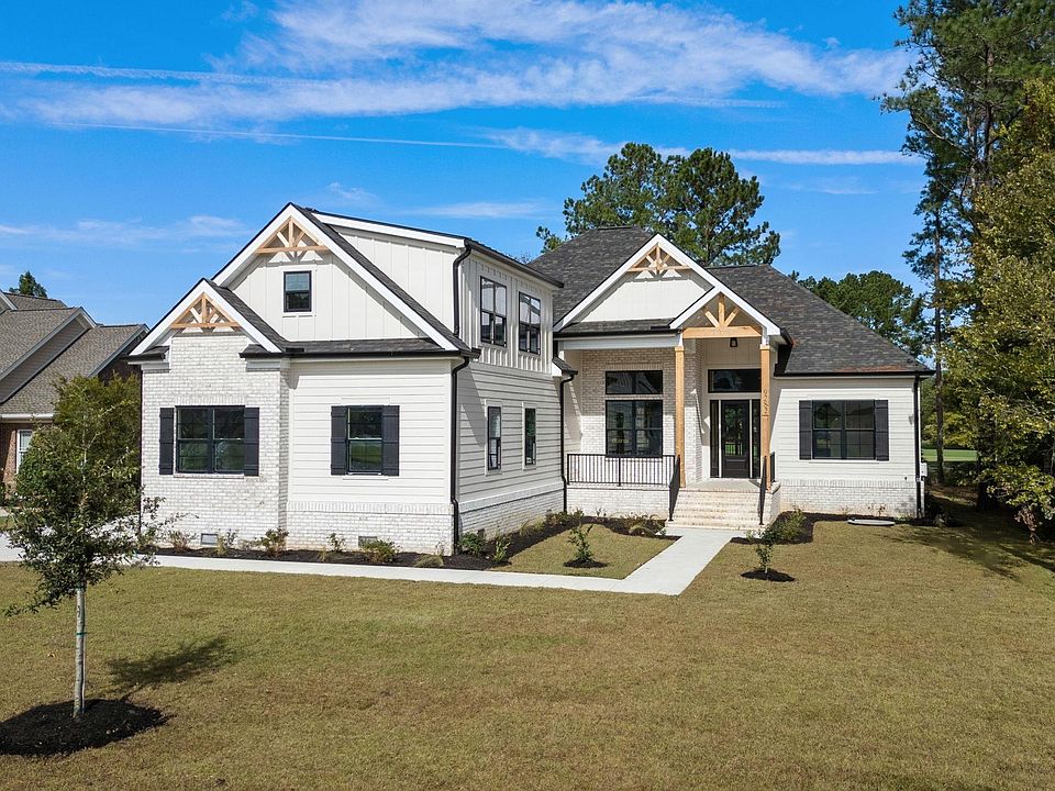 Incredible Opportunity in Crow Creek! Welcome to this stunning 4-bedroom, 3.5-bath home with a 3-car garage and private pool, located in the prestigious gated golf course community of Crow Creek in Calabash, NC. Perfectly positioned on the golf course with a serene pond view, this home offers exceptional curb appeal with its brick façade, black windows, board and batten Hardie siding, and cedar-wrapped beams. Step inside the grand entrance with soaring 14-foot ceilings and be captivated by the home’s custom elegance. The open-concept layout seamlessly connects the formal dining area, spacious living room, and chef’s kitchen—perfect for entertaining or everyday living. You’ll love the coffered ceilings, custom trim work, and gas fireplace with built-ins that elevate the main living space. The gourmet kitchen features sleek black appliances, a 36-inch cooktop with a custom hood, built-in microwave and oven combo, and a cozy dinette area for casual meals. A large pantry, dedicated laundry room, and guest half bath round out the main living areas. The luxurious owner’s suite is a private retreat featuring a tray ceiling with bay windows, a spa-style bath with a soaking tub, oversized black tile walk-in shower, dual vanities, private water closet, and a generous walk-in closet. This home follows a split-bedroom layout, with two spacious guest bedrooms on the opposite side that share a full bath. Upstairs, you’ll find an incredible in-law suite or bonus room complete with a full bath, custom tile shower, walk-in closet, and even a kitchenette—perfect for extended guests, a media room, or flex space. Step outside and unwind on the expansive covered patio overlooking your private 12x24 concrete pool, surrounded by beautiful paver decking—ideal for summer entertaining. Crow Creek offers a resort-style lifestyle with access to top-tier amenities: Indoor & outdoor pools, Fitness center, Tennis & pickleball courts, Scenic walking trails, Full-service clubhouse, pro shop & restaurant, and Championship 18-hole golf course designed by Rick Robbins. Located just minutes from the NC beaches and the South Carolina border, this home truly delivers the best of coastal living. Don’t miss your chance to own in one of Brunswick County’s most desirable communities—schedule your private showing today!