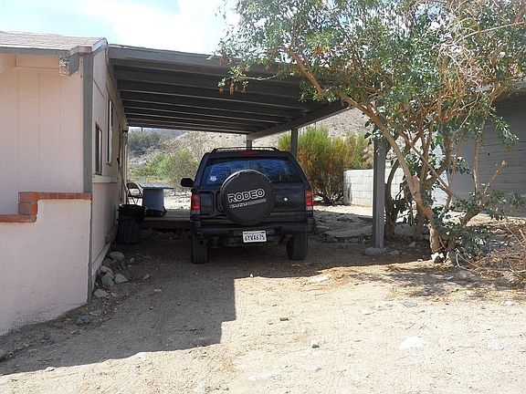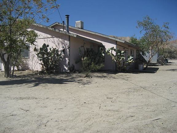 Charming Upper Desert Ranch with two bedrooms and two full baths. Also includes a detached garage which can be used as a studio. Covered carport is attached to the home. Fully fenced with large, mature trees. In a quiet neighborhood with lovely homes surround. Well maintained country dirt road leads to this lovely home. Newly painted throughout with new laminate flooring in kitchen and bathrooms. New carpet was installed less than one year ago in bedrooms and living room. Entry room has new ceramic tile.Lovely lanai with big, airy windows makes a perfect spot for morning coffee. Also has a small den/office off the entry. Ceiling fans in kitchen and living room with evaporative cooling keeps the house very cool in the summer time. Cozy wood burning stove in the living room too!