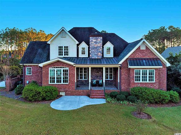Absorb the luxury that this custom built, move-in-ready, home offers the minute you arrive. First, you are greeted by the warmth of the brick and stone exterior as the front porch welcomes you to this architectural delight. Then, inside you will find high ceilings, picturesque views that envelope you and detailed moldings that are complimented by a warm color palette. Notice how the sunlight dances on the Brazilian cherry hardwood and Carrara marble floors. Plenty of space to entertain in the oversized kitchen. Enjoy the north facing back porch that provides a relaxing and comfortable space to enjoy the beautiful Crow Creek Golf Course landscapes that surround this home. In fact, the winding water scenery is breathtaking and can be enjoyed from most every window in the home or from the comfort of the covered rear porch. Other extra special features include a Rinnai hot water system that provides continuous hot water, coffered & trey ceilings, a gas fireplace in the living room, motorized chandelier for easy cleaning, large bonus room, oversized garage, golf cart parking pad and an encapsulated crawl space. This gated community offers fabulous amenities like a restaurant, clubhouse, outdoor pool, tennis courts, and fitness center. Just a short drive to visit charming downtown Calabash, Ocean Isle, Sunset or North Myrtle Beach. Welcome home!