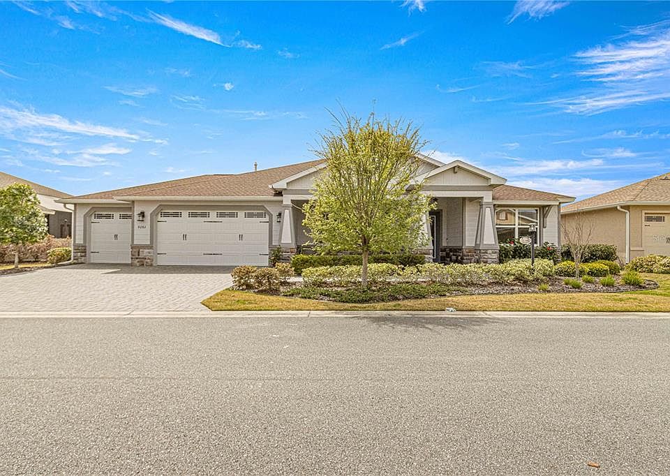 Welcome to your dream home in Candler Hills within the highly desirable Gated 55+ Community of On Top of the World! This Meticulously-maintained 2019 Brighton model Estate boasts modern elegance and thoughtful upgrades, making it better than new. With a fenced yard, air-conditioned Man Cave and an AutoMower, luxury meets convenience in this 2-bedroom (plus spacious Den or 3rd bedroom), 2-bathroom, 3-car garage sanctuary. As you approach you will be greeted by an extra-large front porch, upgraded stone exterior and beautifully landscaped yard.Upon entry of the home you will quickly find this whopping 2,268 Sqft of indoor living space lives large. Gorgeous porcelain tile flooring throughout the main living areas, crown molding, natural light and upgraded bead board interior doors. The Kitchen is a chef's delight with 36" lower cabinets, upgraded 42" upper Wellborn maple cabinetry, granite countertops, tiled backsplash and top-of-the-line appliances including a built-in gas cooktop & wall oven with microwave makes preparing meals a breeze. Relax in the master bedroom suite featuring a zero-entry tile walk-in shower, double sinks and access to the large walk-in closet and laundry room for added convenience. Split floor plan with 2nd bedroom and bathroom on the other side of the home offering privacy & convenience for guest. Directly off the dining room is a spacious screened in patio, perfect for enjoying your morning coffee or evening glass of wine. Experience the ultimate in relaxation with a fenced backyard ready for your furry family members, raised bed garden on a sprinkler system and an AutoMower that keeps the lawn pristine year round- all controlled effortlessly via an app on your phone.Oversized 3 car-garage provides plenty of space for your vehicles and storage. But wait there is more, as an added bonus there is a 12x16 air-conditioned bonus room that can easily be turned into a Workshop or Office. Located in Ocala's premier gated 55+ community which offers tons of activities such as 20 miles of trails, golf courses, restaurants, heated pools and many more amenities. While still close enough to enjoy golf cart access to stores, restaurants and shopping outside of the community. Don't miss out on this turn-key ready home offering the luxury lifestyle you deserve. Your perfect retreat awaits!