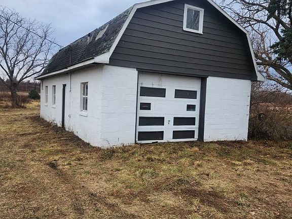 Great old farmhouse with good bones! Taken down to the studs, drywall and paint in living room and kitchen. Cabinets are there and need hung. Upstairs all rooms need flooring. Newer windows and newer roof. Take a look, it won't take much to bring this beauty back! Garage is in need of roof repair.