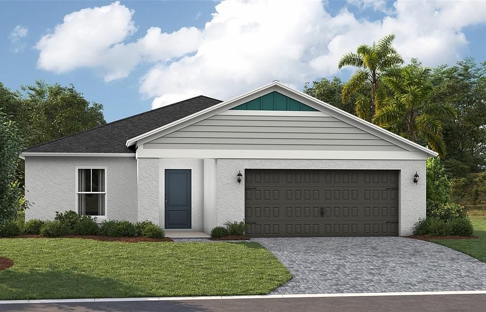 Under Construction. Discover a world of effortless elegance and comfort with the Valeria, a single-story home featuring 4 bedrooms, 2 bathrooms and a 2-car garage. The foyer leads to three bedrooms, a full bathroom, and a convenient laundry room with washer and dryer included. The vaulted-ceilings and open concept living, dining, and kitchen areas are perfect for entertaining or cozy family nights, all enhanced by sleek quartz countertops, stainless steel appliances and luxury vinyl plank flooring. Enjoy seamless indoor-outdoor living with access to the covered lanai through sliding glass doors in the dining area. The owner’s suite is spacious and can easily fit a large bedroom set, the owner's bathroom is impressive with a dual vanity, walk-in shower and an oversized walk-in closet. The smart thermostat with voice control and charming landscaping add to the home’s appeal and practicality. Come explore Pasadena Ridge, a new home community in Pasadena Hills. This new lifestyle community is where connection, comfort, and possibility come naturally. Just minutes from charming downtown and with easy access to I-75, Pasadena Ridge blends the warmth of small-town living with the freedom to explore. With thoughtfully designed homes and ample amenities that inspire both relaxation and recreation, residents will enjoy a private club with pickleball courts, a fitness center, playground, and resort-style pool. Pasadena Ridge will also feature open green spaces, including a food truck lawn and an event lawn. Images shown are for illustrative purposes only and may differ from actual home. Completion date subject to change.
