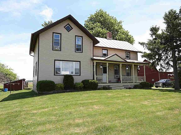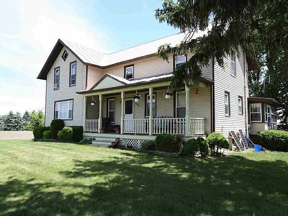 Beautiful Farm House on 4 Acres. Located on a paved road with city water. Hardwood floors on main floor. Newer Windows and Furance. Family room with wood stove. Living room with large picture window. First Floor Bedroom, currently being used as an office. Oversized Dining Room. Kitchen with lots of storage space. 3 Additional Bedrooms upstairs with oversized closets. Front covered porch and side screened porch to enjoy the views of your peaceful rural setting. Many outbuildings including a 92x36 2-story barn. Fenced corral area for animals. 1 Year Home Warranty Included.