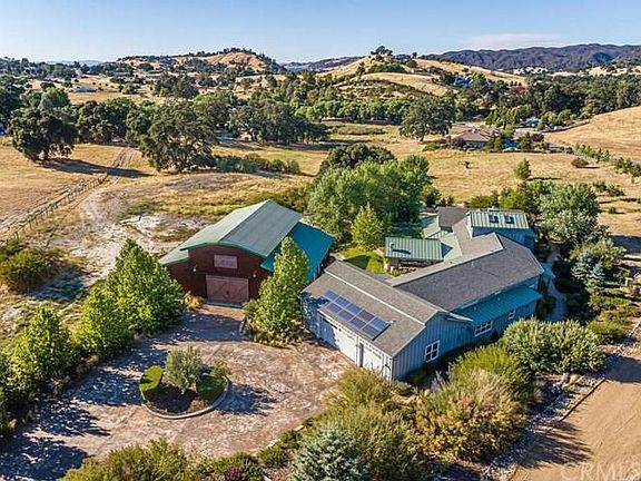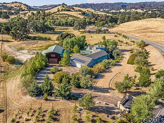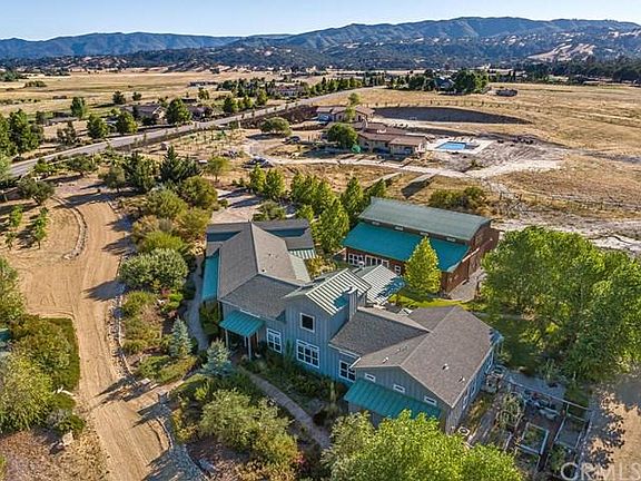 A stroll outside the residence greets you with a covered patio, designed as an entertainer's delight with outdoor wood burning fireplace and abundant space for guests. This 6.8+/- acre solar estate is located in the exclusive Margarita Farms neighborhood, located between Atascadero and Santa Margarita. The focal point of the living area is the beautiful kitchen with generous island, top of the line stainless steel appliances and plentiful cabinets. Near the kitchen there is an oversized walk-in pantry. The vast master suite with adjacent office is located on the north side of the house, with a soaking tub, walk-in shower, matching private vanities and a generous walk in closet/changing room. A double-sided fireplace gives ambiance and warmth to the office and living space. The oversized guest bedrooms are adjoined by a bathroom with private vanities. The artfully designed landscape is marked by mature ornamental and fruit trees, shrubs, bountiful wine and table grapes and a charming garden space, creating a delightfully private oasis for peace and socially distant relaxation. Ample parking is available in the oversized, attached 3-car garage, but if that's not enough, there is a 3,000+/- square foot drive-through shop designed for an additional recreational area or the hobby enthusiast. Shelter in place at this centrally located modest estate, which also offers convenient access to Highway 101 just minutes north of San Luis Obispo, the gem of the Central Coast.