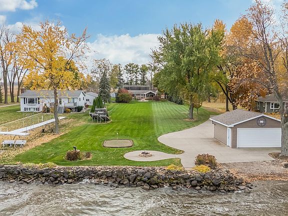 Situated on over an acre with 100 feet of water frontage, this recently renovated property offers a peaceful, wooded setting surrounded by mature trees. The home includes 2 bedrooms, 1 bathroom, and approximately 1,242 square feet of living space featuring granite countertops and well-maintained finishes. Outdoor amenities include a 27x15 patio with 15 feet covered, two cement-surrounded firepits, a boat launch, and approximately 100 feet of dock. The property also features a 22x22 boathouse with epoxy floors, a heated 4-car garage also with epoxy floors, and a 14x44 bonus area above the garage. This property combines practical amenities with a naturally beautiful landscape along the waterfront.
