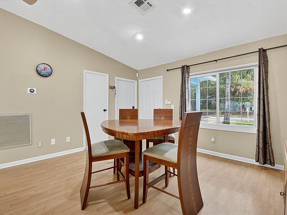 The kitchen boasts granite countertops, stainless steel appliances, and an abundance of natural light. The open living areas are complemented by energy-efficient upgrades, including a 2019 central A/C system, two 2022 mini-splits, a 2022 water heater, partial impact glass, and full hurricane panel protection.