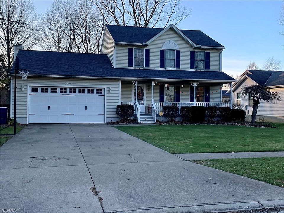 3 bedroom 2.5 bath colonial with inviting front porch on large fenced lot. Eat in oak kitchen with island that opens up to family room with fireplace. Formal dining room and living room complete the first floor. Large master bedroom with master bath with dual sinks. 2 additional bedrooms and full bath complete the second floor. Partially finished basement which can be used for game or rec room. 2 car garage. Storage shed and 21' round above ground pool with large trex deck for entertaining. All appliances stay. Newer roof 2017. Close to highways, no HOA fee.