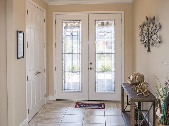 LIVE THE LIFE in this upscale resort home located in Sanctuary of Candler Hills gated 55+ golf community. This amazing Smart Home, Wellington model, has 3 bedrooms (two master suites), 3 baths, 2-car garage PLUS golf cart garage and owner has installed a generator that will back up the entire home. The brick paved driveway and sidewalk leads you to a covered porch entry. Enter the lovely French etch stain glassed doors to spacious foyer w/large coat closet. The right hallway leads to Guest bedroom w/walk-in closet and 3rd bath w/tub and shower surrounded with ceramic tiled and quartz vanity, spacious Flex room offers so many uses. (office, den, or hobby room). To the left of Foyer is the deluxe owner's entry area that has been upgraded with built-in counter-top and cabinets. Laundry room was upgraded with more built-in counter-tops w/laundry sink, (folding clothes space) and additional cabinets over the washer & dryer area for storage. Moving forward from the Foyer, welcomes you to the luxurious open, bright, and airy heart of the home. This open area integrates living, cooking, and dining for large family and guests for entertaining. The Kitchen offers oversize chef's island that is large enough to comfortably seat 4 guests w/pendant lighting. Kitchen features: staggered cabinetry w/crown molding with quartz counter-tops, stainless steel package (built-in 5 burner gas cook-top w/vented range hood, energy efficient dishwasher, wall oven w/microwave, upgraded stainless steel LG Smart Wi-Fi 4-door French refrigerator w/dual ice maker and recessed lighting. Formal Dining Room off Kitchen for those candlelight dinners. Great Room is spacious and features tray ceiling with crown molding, paddle fan w/LED light with remote, upgraded custom blind with remote and recessed lighting. Right of Great Room is Master Bedroom II with walk-in closet. Master bath with walk-in shower, frame-less shower clear glass swing door, shower wall surrounding tile and shower trench drain. Right side of Great Room is Master Suite I with tray ceiling, upgraded custom blind with remote, large walk-in closet. Master bath has double vanity with square sinks, huge walk-in tiled shower with large bench, frame-less glass panels. Slider doors from Great Room leads to a new glassed enclosed lanai to relax and enjoy with solar shades to block the sun and provide privacy. A MUST SEE WITH MANY UPGRADES!