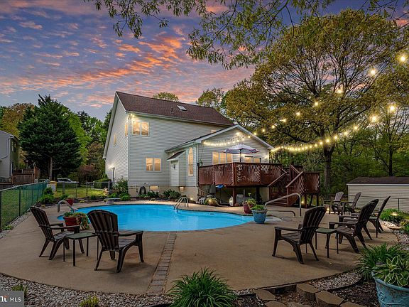 Beautiful Custom Built Colonial in the water privileged community of Venice on the Bay. VA Assumable Loan at 2.25%. The many custom features are sure to please! Over 4900 total finished living space!! Perfectly set up for an In-Law Suite if need! The 2-story foyer opens to the formal living and dining rooms. The large extended kitchen offers 2 tiered center island with seating for 4, granite counters, 42" cabinets, all new stainless steel appliances, cathedral ceiling in the casual dining area that also offers a built-in TV space above the gas FP that can easily be connected to propane, cathedral ceiling, ceiling fan and recessed lighting. Beyond the kitchen is a huge family room with cathedral ceilings and propane fired gas fireplace. For outdoor entertaining...French Doors lead to a spacious deck, enhanced landscaping with lights, and steps leading down to the pond shaped in-ground pool surrounded by a concrete patio for summer lounging! The beautiful finished lower level offers a full kitchen with granite counter tops, dining area with slider door to a short, wide walkup to the patio, spacious family room just off the kitchen with a tray ceiling and recessed lighting, a separate room for possible fitness space, and a separate storage room with deep built-in-shelving for additional storage! The lower level also includes a second Primary Suite with a large walk-in-closet and attached primary full bath with tiled shower with seating and pedestal sink. Recent Updates: New Architectural roof (2019), Zoned Heating/Air with a New 2.5 ton HVAC (2019) unit in attic servicing the 3rd level, with new additional vents and returns in all upper level bedrooms, the 4 ton HVAC (2015) services the first two levels. a New second 220V electric panel to service the outdoor shed with lighting installed in the shed, New insulated garage door (2021)and openers, New electric water heater (2022, New stainless steel appliances (2022), enhanced landscaping and lighting, and New custom solid pool cover. Another cool feature is the large, finished storage area under the family room, accessed from the outside that has been water sealed, ceiling has been drywalled, and Kilz painted. Also good to know that there is an extra deep well! Venice on the Bay offers a private beach, and large pond/playground area, boat ramp and a community hall! In addition to the community amenities this home is about than a mile to Compass Point golf course. and Fort Smallwood waterfront park with public boat ramps, beach, fishing piers, walking/biking paths tot/lot playground, basketball and picnic areas! Just minutes to waterfront dining, parks, fishing, boating, walking/biking paths, shops, and golf course! Convenient location for major routes for easy access to Baltimore. Annapolis, fort Meade and DC!