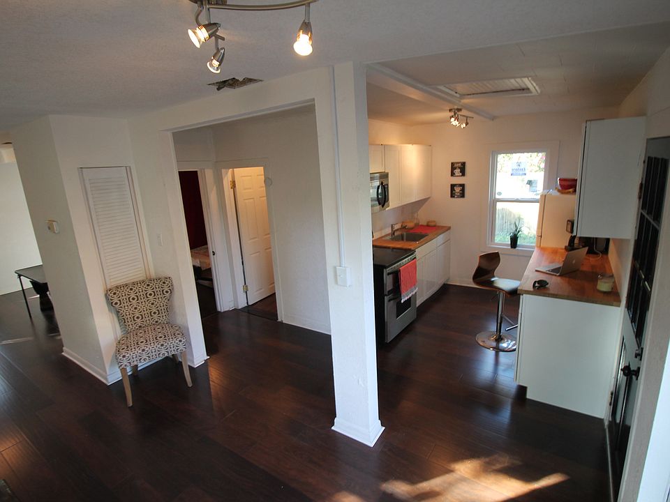 ANNUAL RENTAL UNFURNISHED: Live in a home with character, and a big yard, instead of an apartment or condo. One Bedroom one bathroom house with large fenced yard. Can be seen most weekdays between 10am and 4pm as its being painted, repaired etc after recent tenant move out. Great renovated cottage on large lot, Seems much more spacious than a 1 bedroom/1 bath. Open kitchen, small living area, large bedroom, enclosed front porch makes a nice extra office area/guest room, all new windows, french doors out to the backyard, has new stacked washer/dryer, and plenty of parking. ONLY $1100.00 per month plus utilities: Tenant pays $67.99 per month to City of Bradenton for water, garbage pickup; Tenant pays Florida Power & Light for Electric, and Xfinity for cable/internet. At lease signing Tenant pays First month rent + Last months rent + refundable Security Deposit of one month = $3300. Must be employed and show proof of income, ability to pay rent. Credit check and criminal background check. Guarantors welcome. No Broker Fees. Extra security deposit for pet(s). Tenant responsible for utilities, garbage pickup, water, electric, cable, internet. Minimum 1 year lease. Pet(s) permitted with Owner approval and separate pet security deposit.