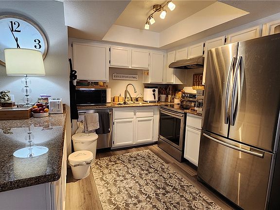This beautifully remodeled condo is a must-see! Featuring 2 Bedrooms / 2 Bathrooms, Upgraded Kitchen including Granite countertops, breakfast bar, and stainless steel appliances,. A Spacious Living Area to call home that includes a cozy fireplace with loads of ample natural lighing. Laminate Flooring Throughout the entire condo. The Primary bedroom has a beautiful closest and large en suite bathroom Conveniently located, to all the best shopping, entertainment, this condo offers both comfort and style.