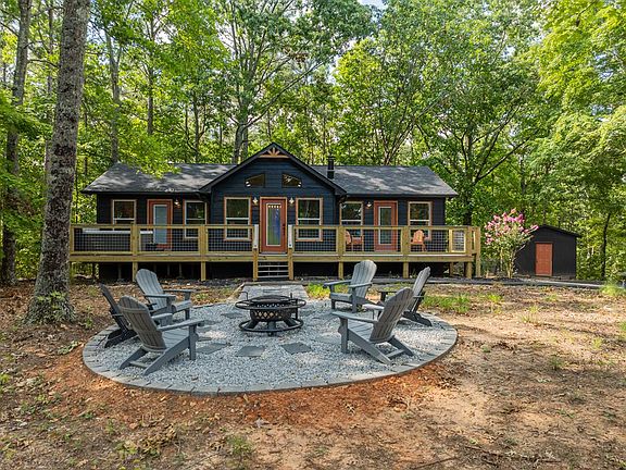 Welcome to your very own private oasis on one of the most scenic lakes in the southeast- the highly coveted Carter's Lake! Nestled in the North GA mountains, this newly renovated cabin provides a perfect opportunity to get into the short-term rental business. It's just minutes away from Carter's Lake's beach, boat docks, and incredible views. Featuring a split floor plan with a full bedroom suite on either end, it is the perfect weekend-getaway for a small family or group of friends looking for a fun Carter's Lake experience. If the potential income doesn't interest you, this cozy cabin would also make a great vacation home. Upon walking in, you are greeted with a sizeable living room, featuring a stone fireplace, that flows right into the beautiful kitchen. Complete with stone backsplash, granite countertops, an island, and even a coffee bar nook, this kitchen has everything you need for a comfortable vacation. From there you can go to either side of the house to relax in your personal bedroom quarters. Each suite is complete with a large bedroom, walk-in closet, and attached full bathroom. No need to fight over the balcony door, as both bedrooms have a door leading directly to the wrap-around deck outside. Even better, there is a hot tub on the deck perfect for relaxing, especially with seasonal views of Carter's Lake itself. If your evenings weren't fun enough, there is also a gravel firepit area in the front yard. Walking around back, you'll find a small porch leading down to a considerable fenced-in back yard, perfect for pets. Other attractive features about this slice of heaven include a paved driveway, a storage building, a laundry closet, and handicap access into the house and one of the showers. Don't miss out on this opportunity for income, relaxation, or both! MUST SEE!!