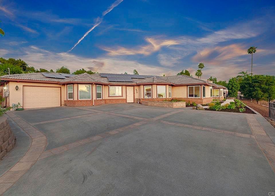 Still a smoking good deal on this one! Outstanding Vista propertunity---this one has it ALL! Spacious 1.54 -acre lot, huge & updated single story main home, attached casita with its own kitchenette, tiny home on wheels, 3 oversized RV spots with water & power, plus SPACE to add a pool, animals like horses, goats, & chickens, a resort-style backyard, potential ADUs...the list goes on! Do not miss out on this one that is priced to sell quick in one of Vista's most desirable neighborhoods. Short drive to freeways, revitalized Downtown area, Cal-a-Vie, & the beach in Oceanside! The main home is huge with 5 bedrooms & an office area, large living spaces, tons of light, & a gorgeous updated kitchen with white cabinetry, stainless steel appliances, an oversized eat-at kitchen island with additional storage & walk-in pantry. A W/D was installed in the primary walk-in closet, including hot/cold water lines, drainage, a dryer vent, & a 220V outlet. In addition to the original primary suite with spacious ensuite bath, a second primary suite was created to allow increased flexibility & functionality of the floor plan. Part of the garage was converted into a dedicated office with half bath — ideal for remote or hybrid work. The attached casita with its own kitchenette is perfect for a nanny or property manager. It features its own private entrance, full kitchen (no washer), living room, large bedroom, & full bathroom. The entire house is wired with Cat6 cable, ready for mesh network & camera security system. The driveway & backyard was upgraded with Italian pavers. The spacious outdoor area is hardscaped & incredibly low maintenance. It features a hot tub & an external storage shed. A gate provides privacy & safety for kids & pets. The sellers terraced the 1.5-acre lot using beautiful Italian retaining wall blocks to create an upper terrace for the main house with a flat 0.25-acre area below with a long gravel driveway leading down to the tiny house & RV sites. The tiny house on wheels features an elevated wrap-around deck, a separate electrical sub panel (shared with RV sites), an electric water heater, connected water line, & a 2,000-gallon septic holding tank with 4” overflow pipe (perforated and spread across property) with easy access for future pumping. Each RV site (total of 3 on property) includes two water hookups, a 32-amp electrical hookup, connected water lines. The RV area also shares an electrical sub panel with the tiny house. The exterior laundry close can accommodate up to 2 washers and 2 dryers (gas or electric) & includes a dedicated electrical sub panel. Property includes a 60-panel solar system, a comprehensive French drain system, & a mesh network that covers the entire 1.5-acre property. All water lines on the property were converted to 1-inch lines. The sellers also planted 35 fruit trees just last month! This North County San Diego Dream Propertunity offers massive amounts of value, flexibility for multi-generational living & income potential, not to mention a sizeable lot to create your personalized resort-style oasis in the back hills of Vista. Do not miss this one!