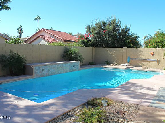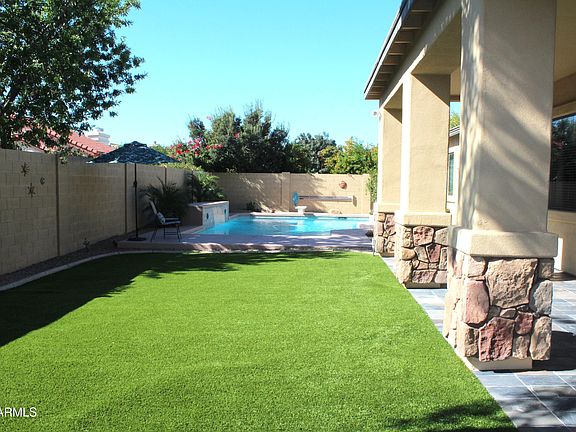 This custom-built 2003 residence combines quality craftsmanship with modern comfort. 10-foot ceilings throughout, custom blinds and 19-inch ceramic tile flooring in the kitchen, halls & primary bath. Chef's kitchen offers granite countertops, double ovens, & abundant cabinet space. The large primary bath includes a Jacuzzi tub for a true retreat experience. The home has a three-car garage with built-in cabinets, a sparkling diving pool & a spacious covered patio—perfect for entertaining. The neighborhood shows true pride of ownership with No HOA. Conveniently located within walking distance to schools and shopping (Sprouts, CVS and Safeway) and restaurants. New retail being built at Warner and Rural. Nearby parks were recently upgraded. Buyer to verify all information.