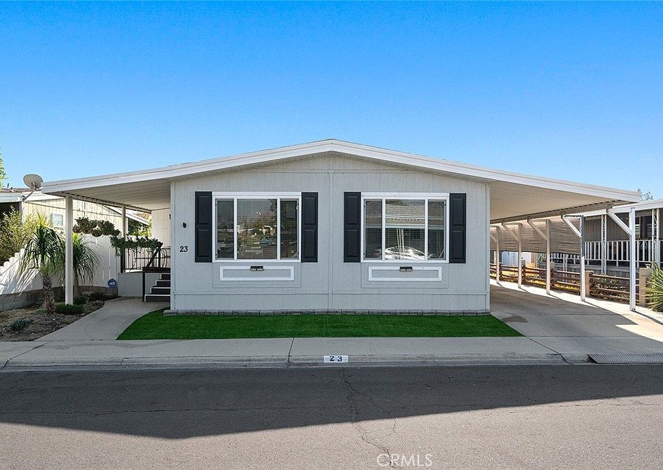 Calling all first time home buyers! ROOF WAS JUST REPLACED IN OCTOBER 2025! Come check out this 2 bedroom 2 bathroom mobile home nestled in the desirable Upland Meadows all age gated community. This beautifully upgraded mobile home boasts an open-concept floor plan with vaulted ceilings, creating a bright and airy living space. The completely remodeled kitchen is a chef’s dream, featuring quartz countertops, stainless steel appliances, and ample cabinetry for storage. The spacious master suite offers a spa-like retreat with a large soaking tub, walk-in shower, and new double sink vanity. A cozy fireplace adds warmth to the living room, making it the perfect place to relax. Additional highlights include a separate laundry room, a carport that accommodates up to 4 cars and premium finishes throughout. Enjoy the convenience and security of living in this well-maintained community while being close to shopping, dining, and freeway access.